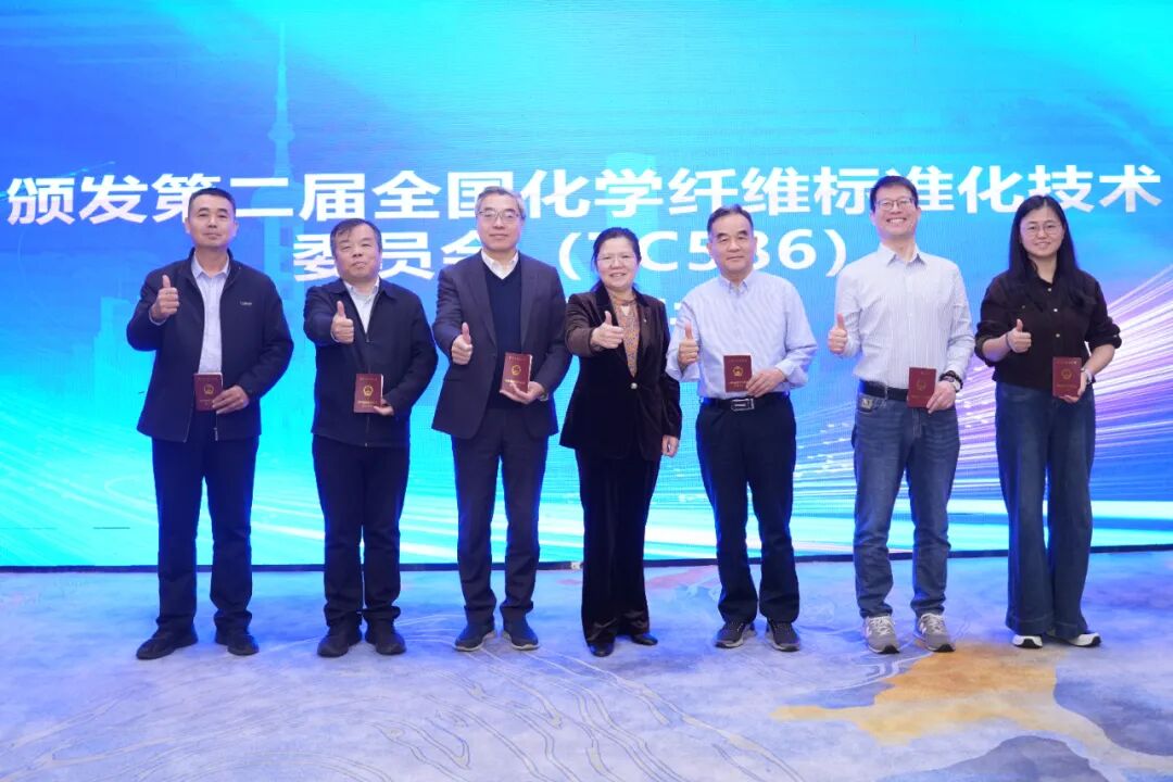 ▲第二届全国化学纤维标准化技术委员会委员代表领取证书