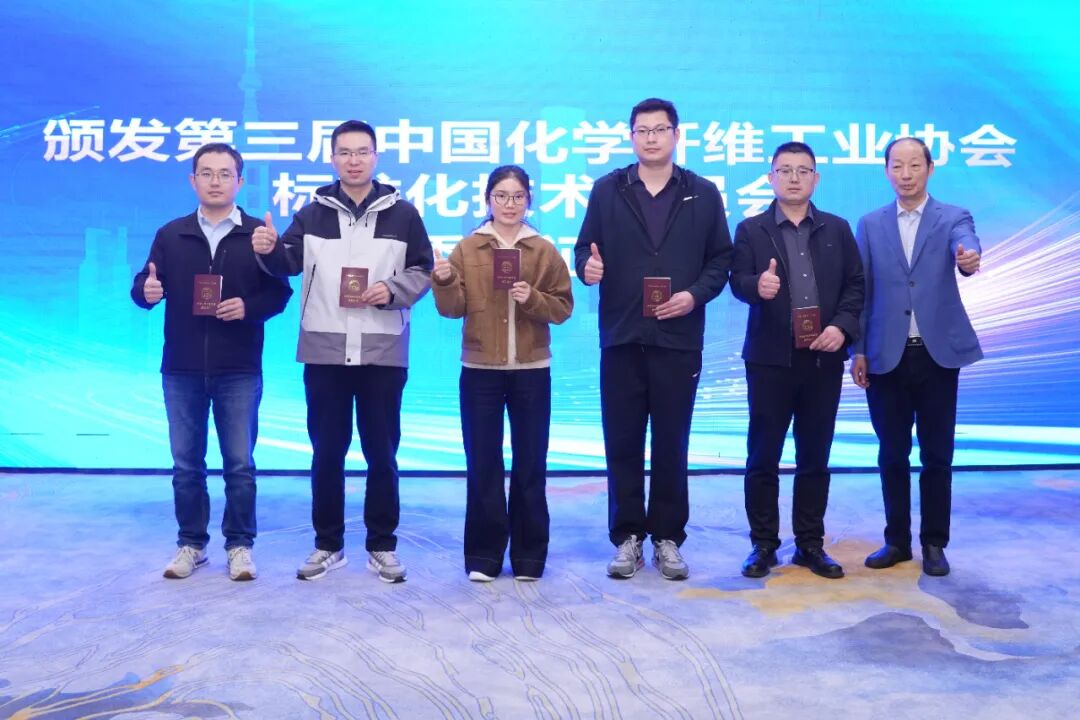 ▲第三届中国化学纤维工业协会标准化技术委员会委员代表领取证书
