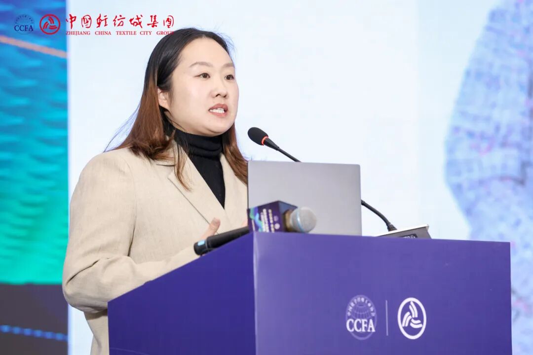 九牧王股份有限公司面料研发部执行副总监林庭玥从品牌视角出发,结合空调裤、太空裤等爆款产品的开发,分享了以终端需求为导向的产业链创新路径。她认为,纤维材料决定裤装的形态、性能与穿着体验,选对纤维,产品就成功了一半。但选对纤维只是第一步,更关键的是产业链协同创新,需打通“纤维研发-成衣设计-市场验证”的全链路闭环。她呼吁,产业链上下游携手共进,倡导“需求驱动”的逆向研发机制,打造以科技创新为引擎的高端裤装新生态。