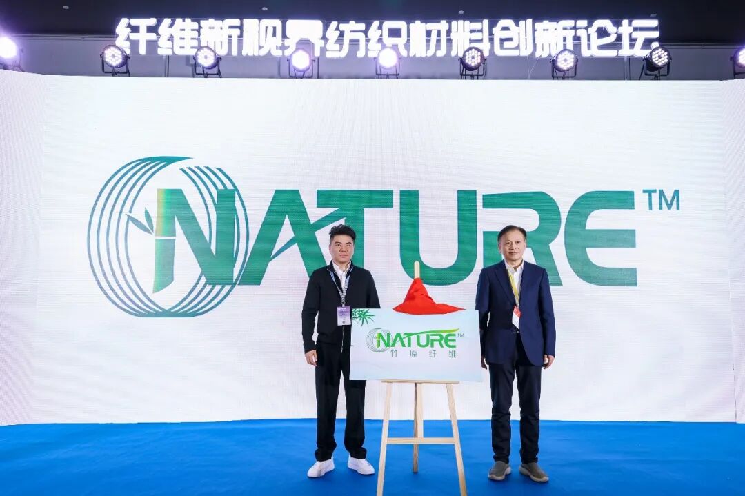 ▲中国工程院院士程博闻(右)、浙江青士新材料科技有限公司董事长单泽钦(左)共同见证竹原纤维品牌发布