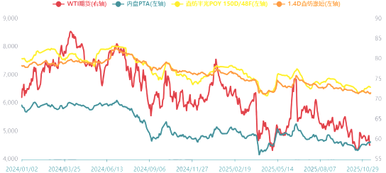 展望全年,化纤行业运行压力依然存在,但在“反内卷”背景下,产能产量增长趋缓,行业供需结构有望持续改善,筑牢平稳运行基础。原料端:在OPEC+退出减产、需求总体温和的背景下,油价中枢整体下移;但考虑到累库幅度不及预期等现实因素制约,四季度或延续震荡局面。化纤主要原料供应充足,预计价格低位盘整。供给端:行业库存总体上暂无明显压力,叠加年末备货预期及外贸环境缓和,开工负荷或将小幅提升,市场有望偏暖运行。需求端:季节性因素驱动、对美出口或将修复等积极因素有望推动终端需求局部回暖,但整体增量有限。行业企业仍需加强产品设计开发及场景创新,激活潜在消费力。